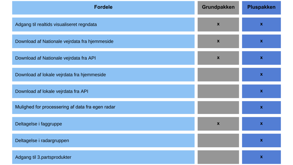 Du kan se forskellene på de to pakker på nedenstående tabel.